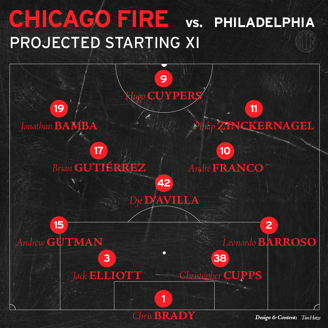 The question is, who on the Chicago Fire will be showing that. Of the Fire’s three signings this window, only André Franco, unveiled at halftime last week in Bridgeview trained with the team throughout the week, is likely to feature. (With Carlos Terán’s departure, that likely means that Christopher Cupps is going to get the nod at center back if he’s back to full health. If he isn’t, Sam Rogers or Omar González – who was on the pitch against Philadelphia in their last meeting, as the team kept the Union from scoring in open play – will get the nod.)